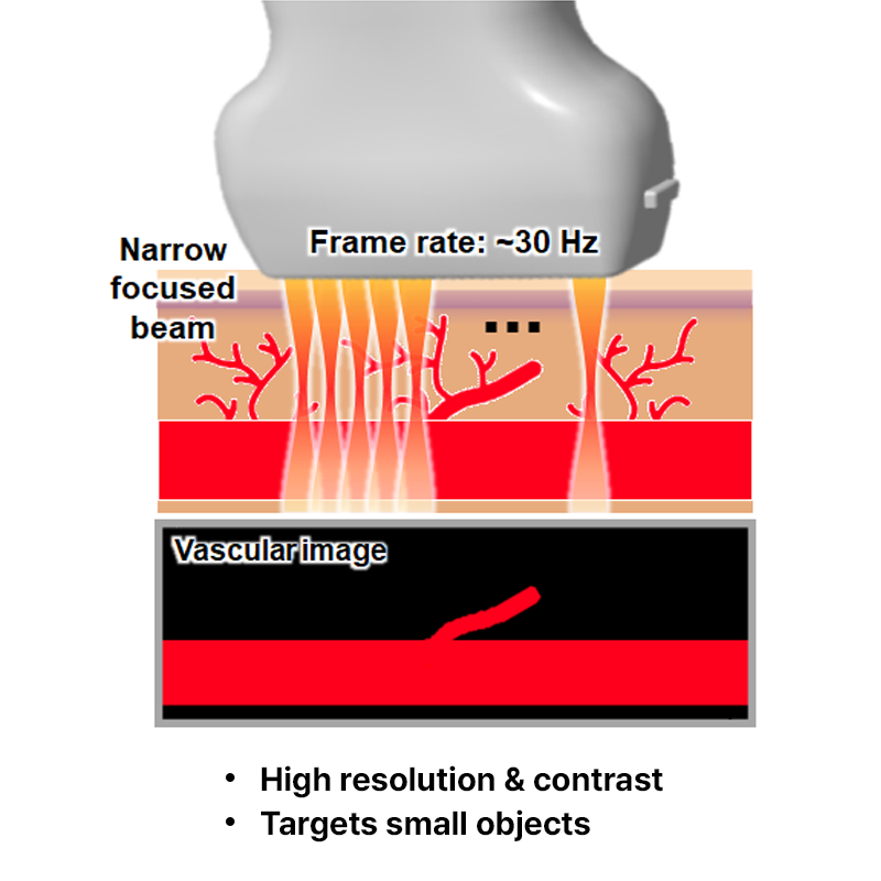 Ultrafast Doppler (UFD) leverages ultrafast plane wave imaging and parallel computing to achieve frame rates up to 1,000 Hz—enabling real-time visualization of dynamic biological processes. This allows for the detection of slow blood flow in micro vessels, which is often invisible with standard Doppler techniques.