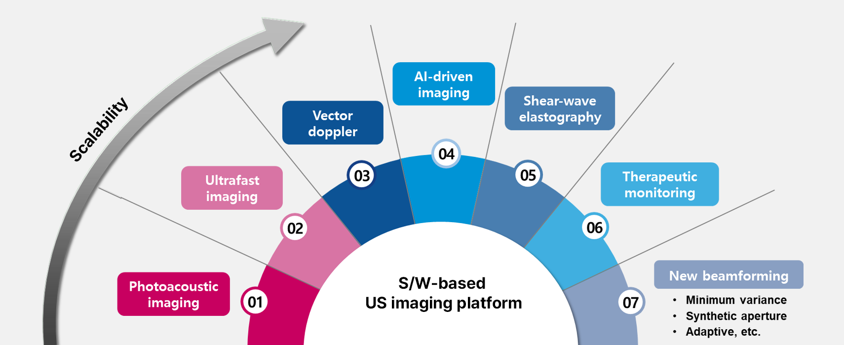 Advanced applications—including photoacoustic imaging, UFD, SWE, and AI-based analysis—can be added or updated through simple software upgrades, with no hardware changes required. This scalable, software-based platform empowers researchers and clinicians to push the boundaries of ultrasound imaging, adapt to emerging needs, and drive medical innovation.